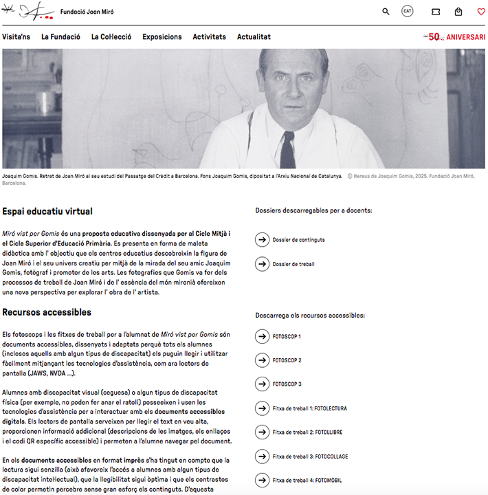 Finalment està penjat a la web de la FJM per a consulta oberta dels materials, i amb accès telemàtic als recursos educatius per als centres i docents que demanin la maleta didàctica per treballar a les aules: https://www.fmirobcn.org/ca/maleta-gomis-material-accessible/